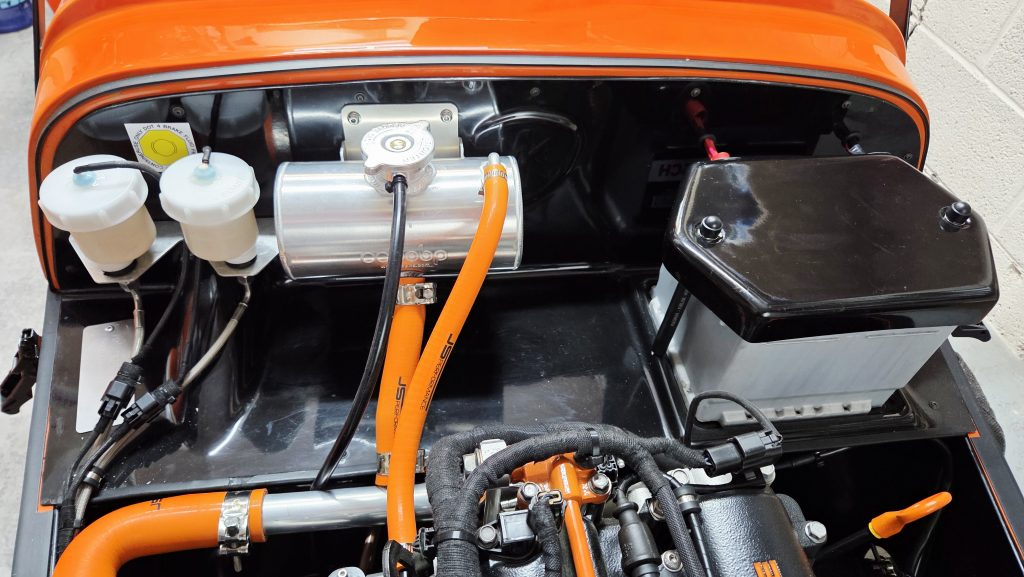 - The brake pots would be difficult to get to due to the coolant re-route I have going around the top rail of the chassis.