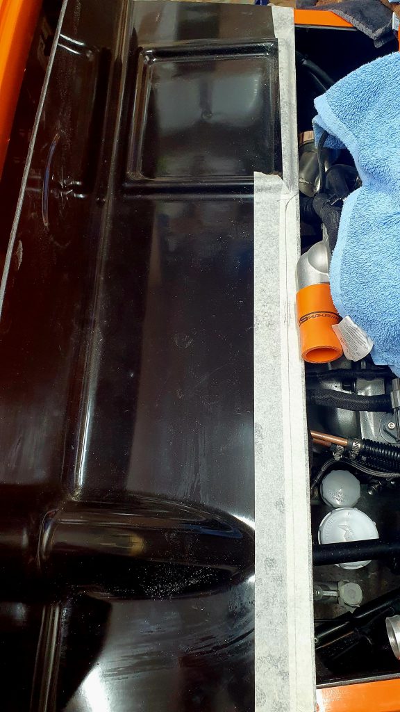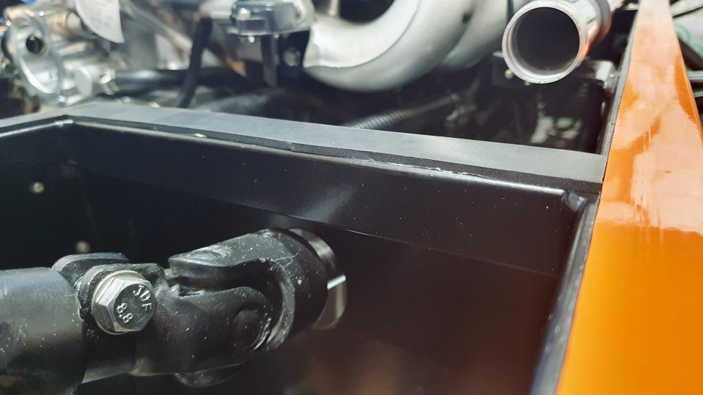 To stop further vibrations and to finish it off, I glued some thin rubber trim/ tape to the back of the bulkhead edge. This presses up against the scuttle and provides a nice seal.