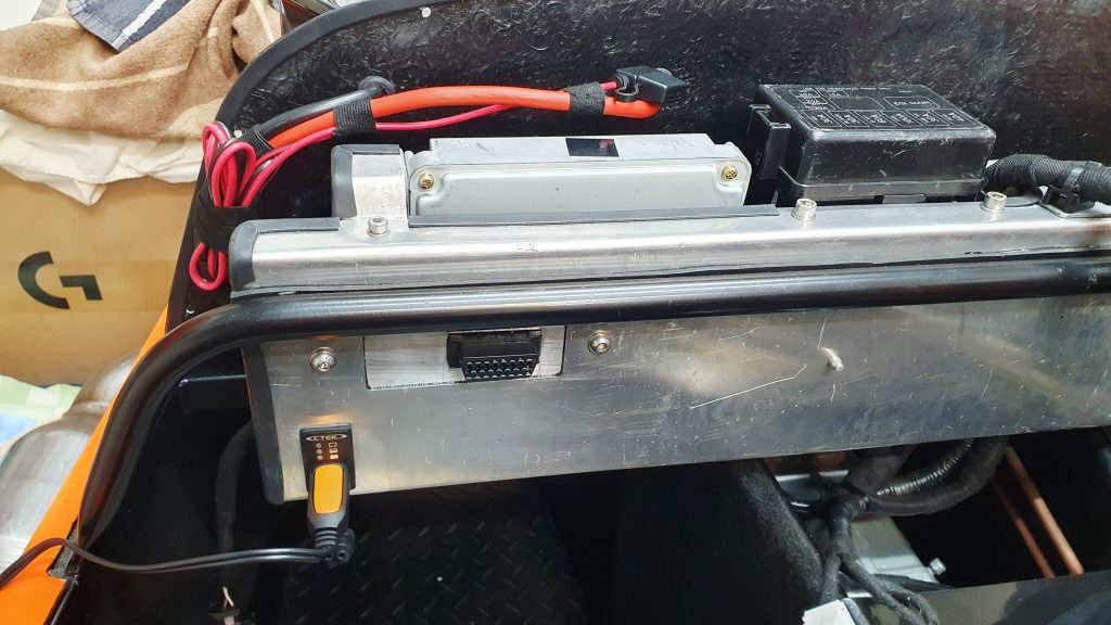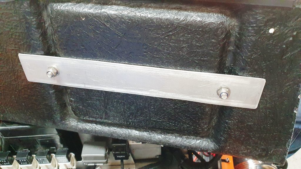 I bought some M8 stainless threaded rod, used an aluminium plate I made underneath for strength and then used some leftover fuel hose to cover the thread. I created a couple of cutouts in the lid for the battery terminals and cables. Then used u-trim on the edge for protection and a piece of rubber on the underside of the lid to keep things secure. The final piece was to cover the underside fixings with a rubber matting for IVA to stop any protrusions into the footwell. I’m pleased with the result.