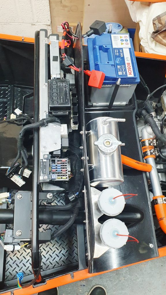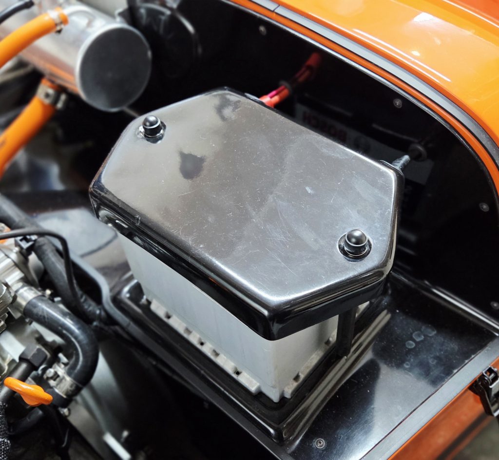 The final element for the MK Indy bulkhead was the fitting of the battery to the tray. For this, I had the standard old-style GRP battery tray and lid. The old MX5 battery fitted perfectly into the allocated battery space.