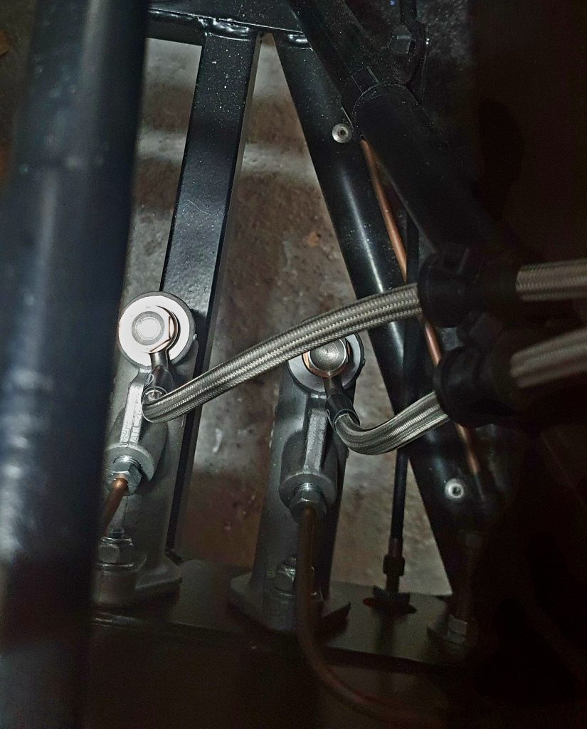 So my approach is to mount them on the bulkhead and get custom brake hoses made to go from the brake pot to the master cylinder.