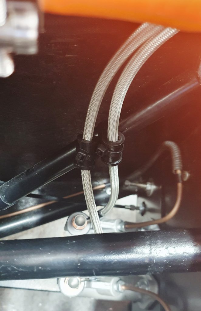 - The brake pots would be difficult to get to due to the coolant re-route I have going around the top rail of the chassis.